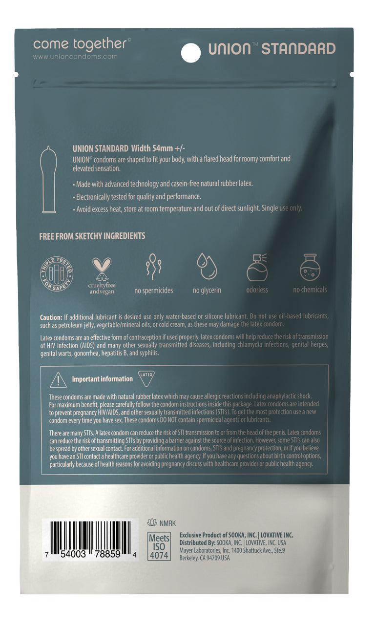 UNION STANDARD features a 54mm straight shaft and a flared head, offering a tailored fit that enhances comfort and pleasure for both partners—without compromising on security. It’s a medium-sized condom crafted to fit most men, engineered for reliable performance and responsive pleasure.