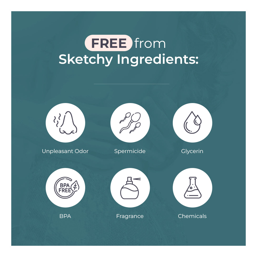 Made from 100% natural latex, free from spermicides, parabens, glycerine, nitrosamines, and casein.